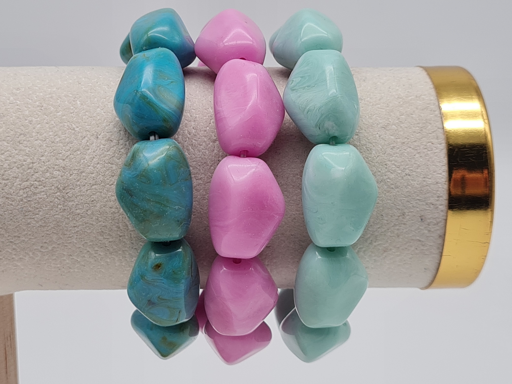Yehwang Armband elastisch retro nickelfrei acryl Rosa Hellgrün Grün