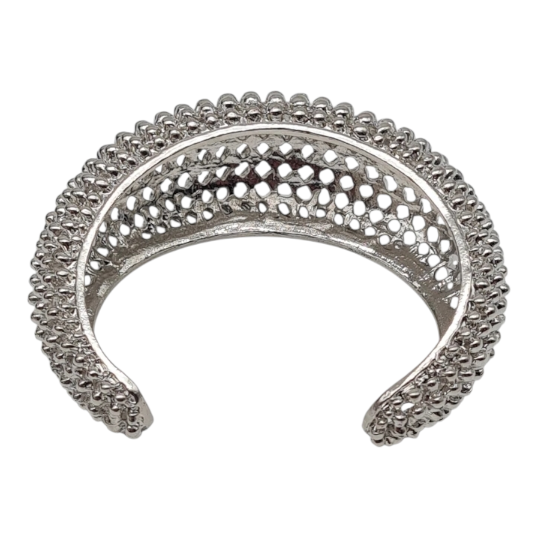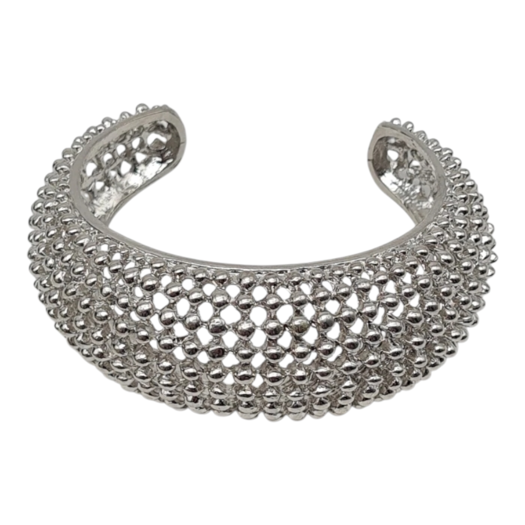 Dieser Yehwang Armreif besticht durch sein innovatives Design aus feinen Stahlkügelchen, die eine faszinierende Oberflächenstruktur schaffen. Gefertigt aus hochwertigem, nickelfreiem Edelstahl in elegantem Silberton, bietet er sowohl Tragekomfort als auch Langlebigkeit. Die 3 cm breite Ausführung macht ihn zu einem vielseitigen Accessoire – ob als eigenständiges Statement-Piece oder harmonisch kombiniert mit anderen Schmuckstücken. Ein durchdachtes Geschenk für alle, die Wert auf unkonventionelle Eleganz legen.