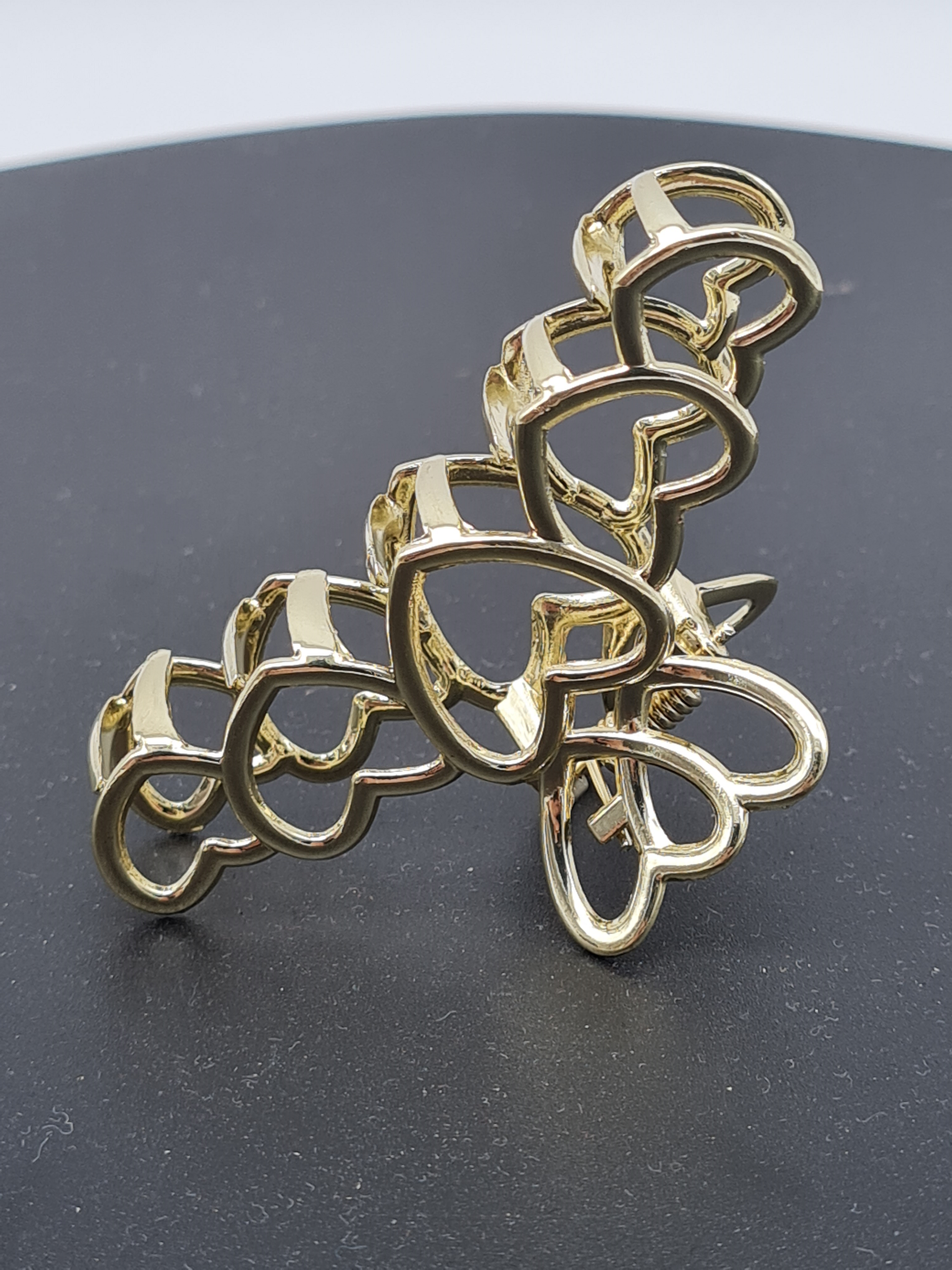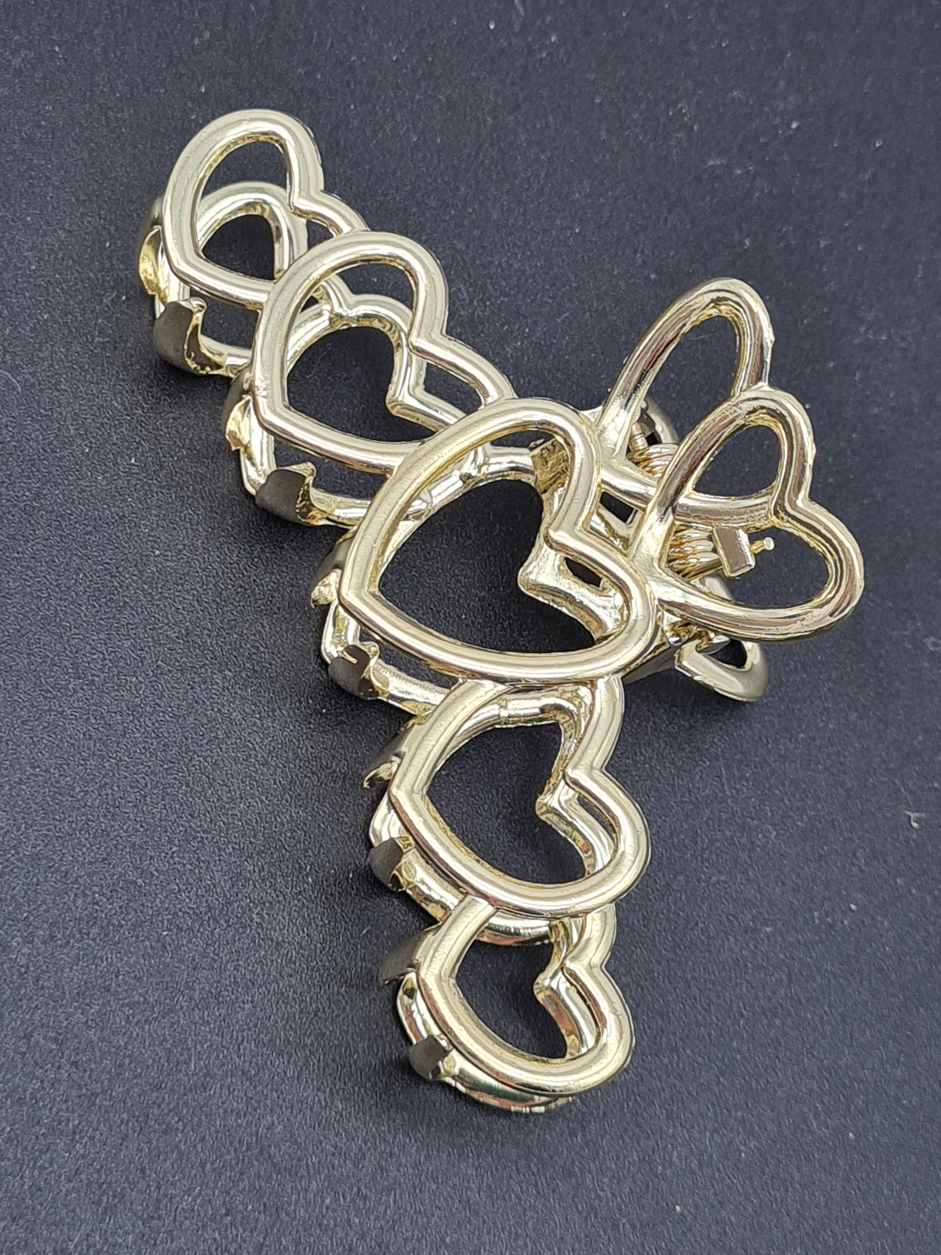 Romantische Haarklammer in Goldfarben, verziert mit verspielten Herzchen.