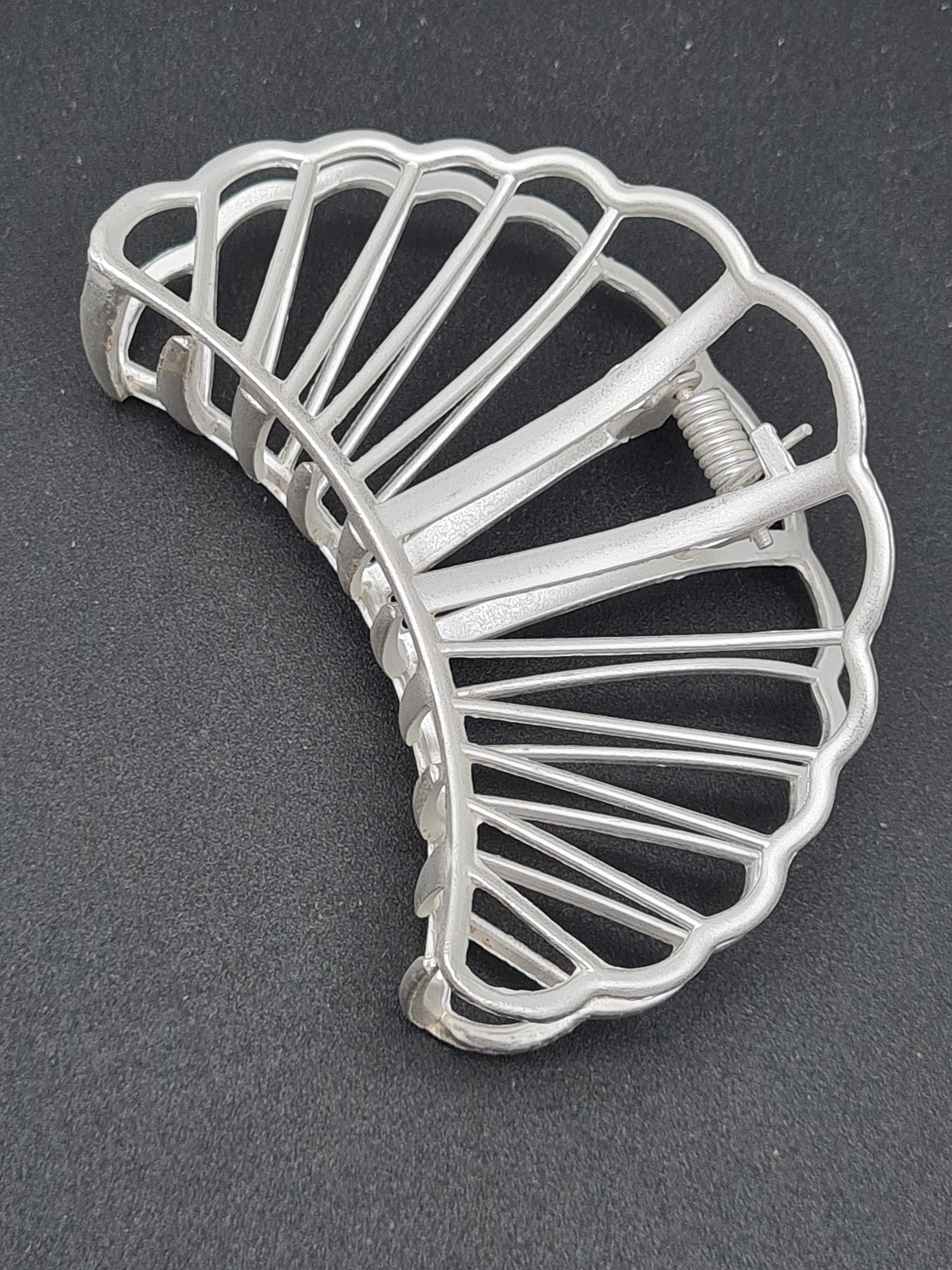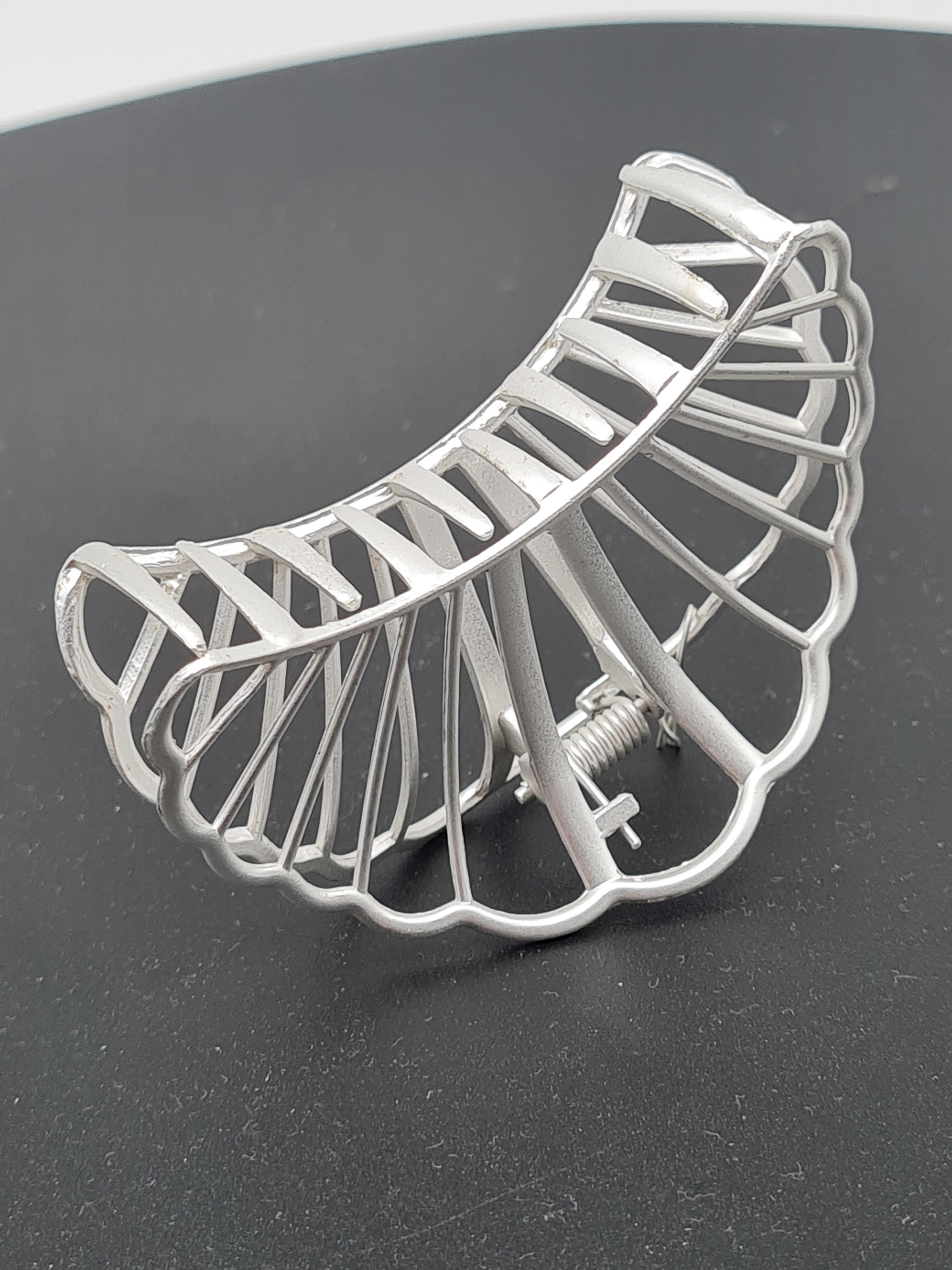 Edle Haarklammer aus Metall in Silberfarben, gestaltet in filigraner Fächerform im Vintage-Stil.
