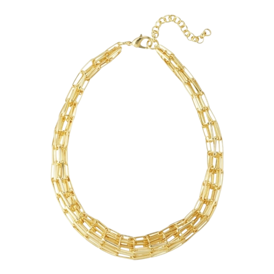 Setze ein glänzendes Highlight: Die auffällige Halskette in edler Netz-Optik verleiht deinem Look sofort Glamour und Selbstbewusstsein. In strahlendem Goldton wird sie zum perfekten Eyecatcher – ob zu schlichten Outfits oder eleganten Styles. 💫