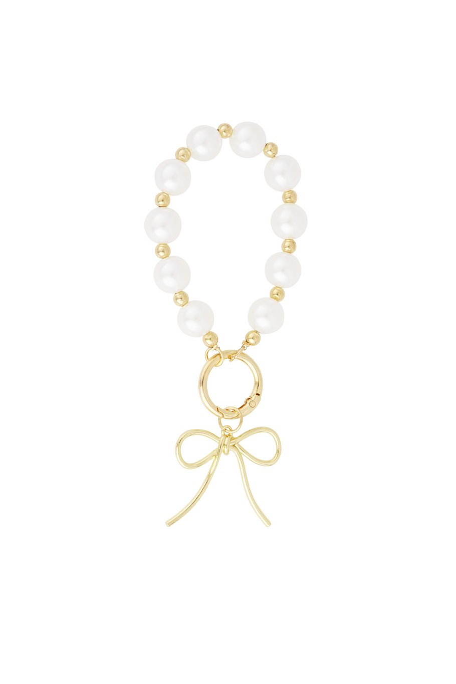 🎀 Yehwang Schlüsselanhänger – Goldene Schleife mit Perlenkette 🎀