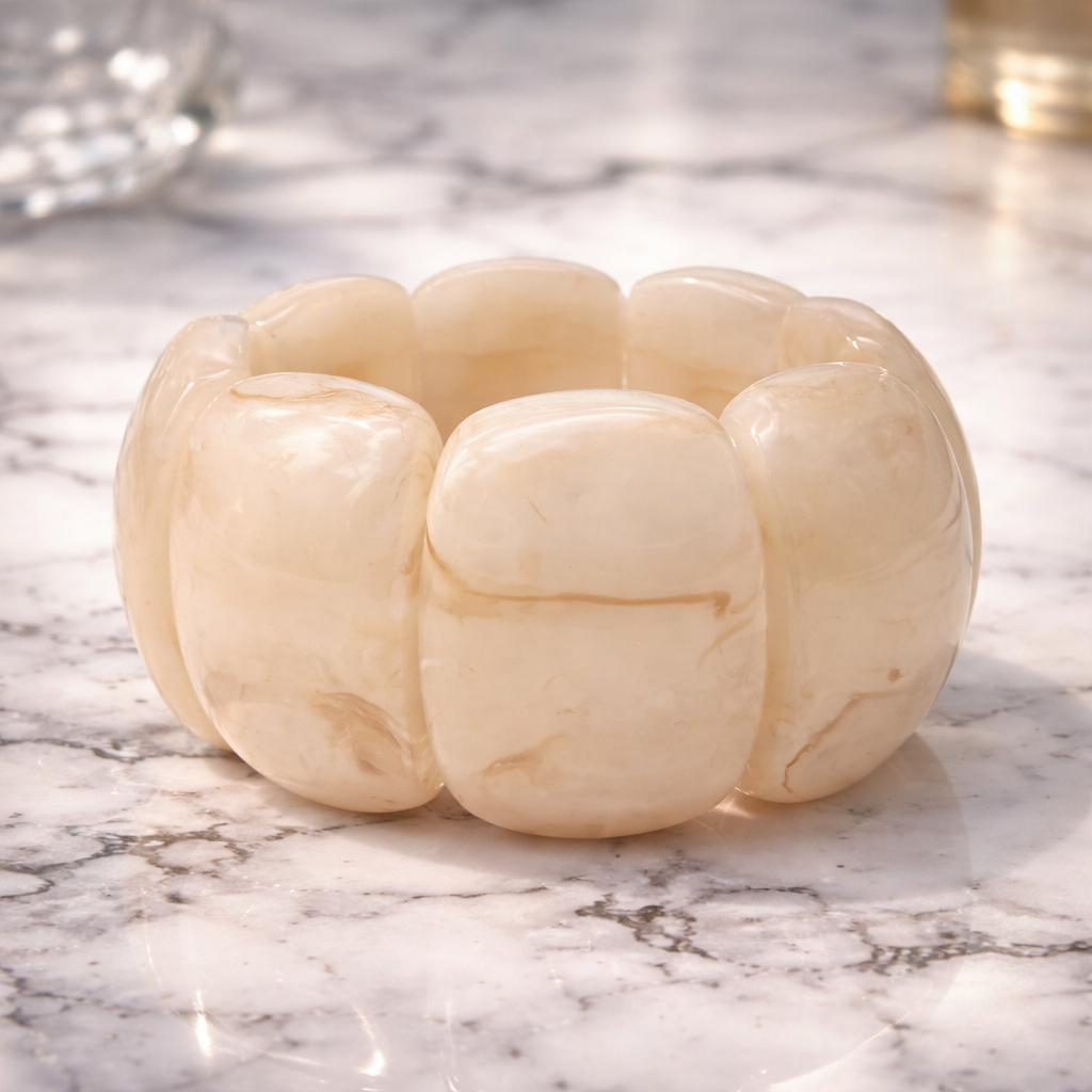 Armband Acryl Stretch Marmor Look Creme und Schwarz Nickelfrei trend 2026 Yehwang