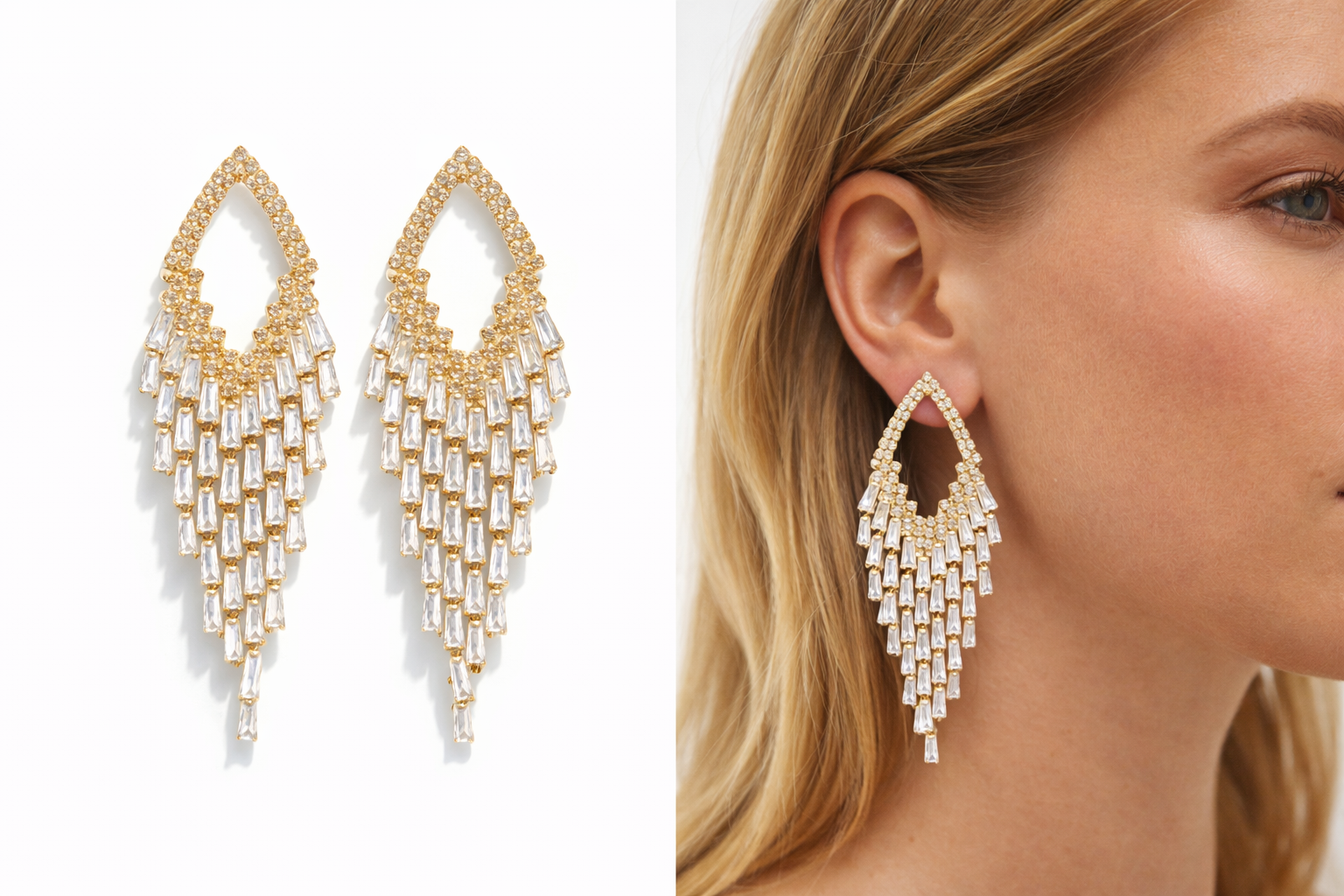 Yehwang Ohrhänger „Glitzernder Diamant" – funkelnde Eleganz für festliche Momente. Das edle Design besticht durch diamantähnliche Facetten in strahlender Goldfarbe und verleiht jedem Anlass das gewisse Etwas. Ob Hochzeit, Party oder Gala – diese nickelfrei verarbeiteten Statement-Ohrhänger setzen glamouröse Akzente. Maße: 2,3 cm x 9 cm. Gewicht: 18,2 g.