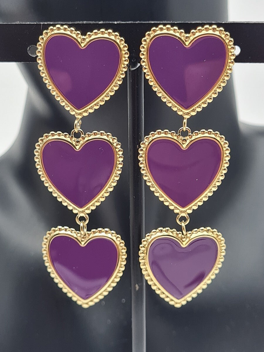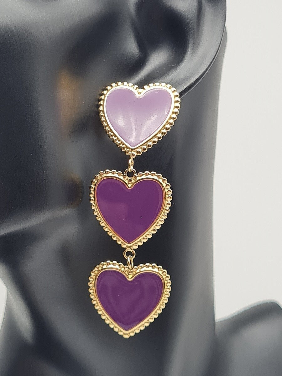 Yehwang Ohrringe „3 Herzen“ – anmutige Eleganz in Lila