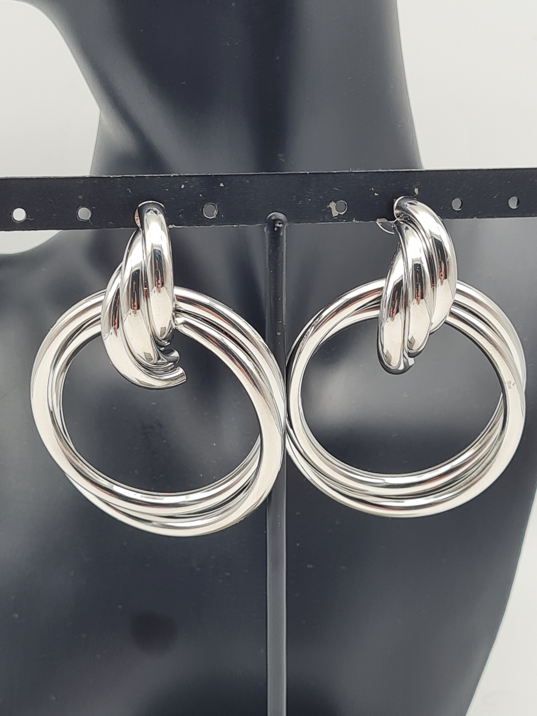 Yehwang Ohrringe doppelten Ringe Creolen Ohrhänger silberfarben nickelfrei