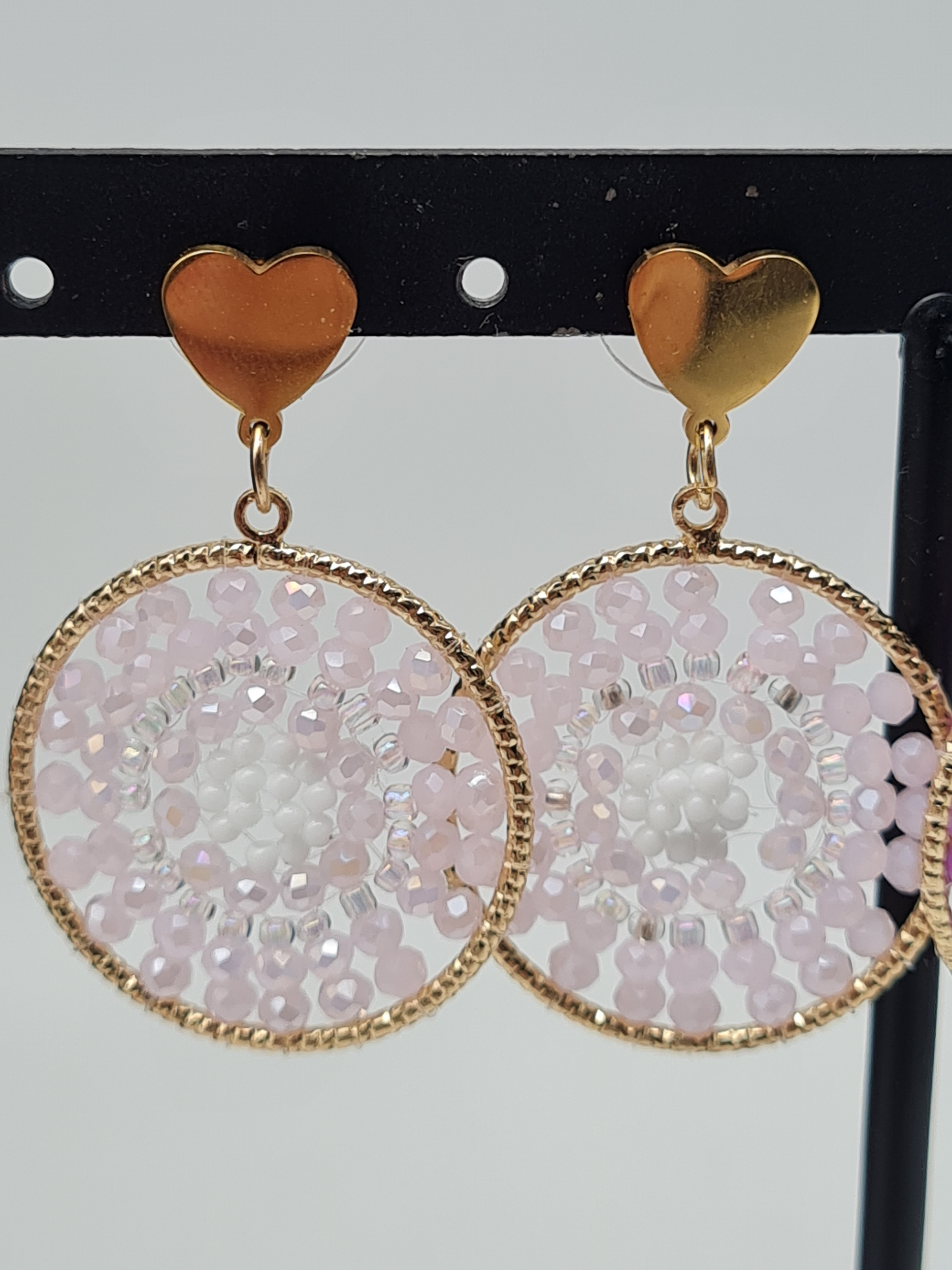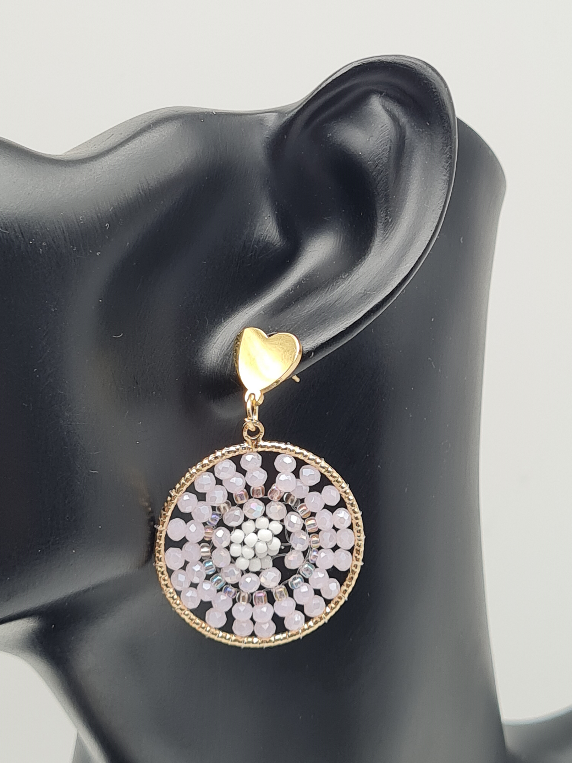 Diese kunstvollen Ohrhänger im Mandala-Design verzaubern mit einem romantischen Herz-Detail und sind in zarten Lila- oder Blassrosa-Tönen erhältlich. Das verspielte, elegante Design macht sie zum perfekten Accessoire für Boho-Looks, Sommerfeste oder romantische Anlässe. Dank des nickelfreien Materials sind sie angenehm zu tragen und setzen stilvolle Farbakzente.