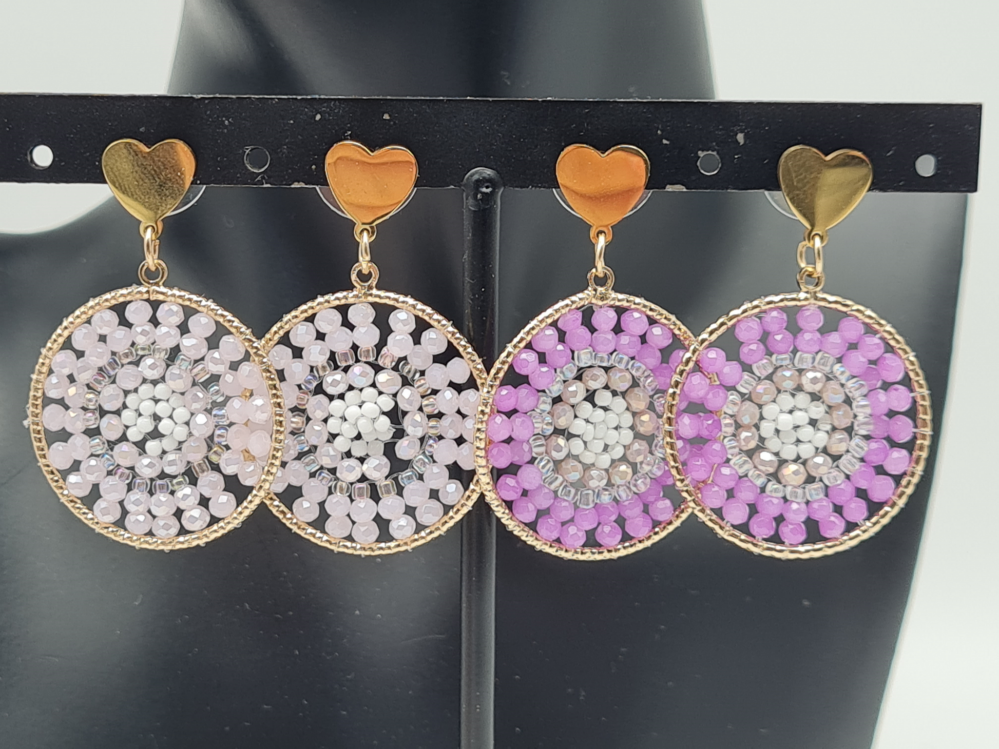 💜 Yehwang Mandala-Ohrhänger mit Herz – Lila & Blassrosa 💗