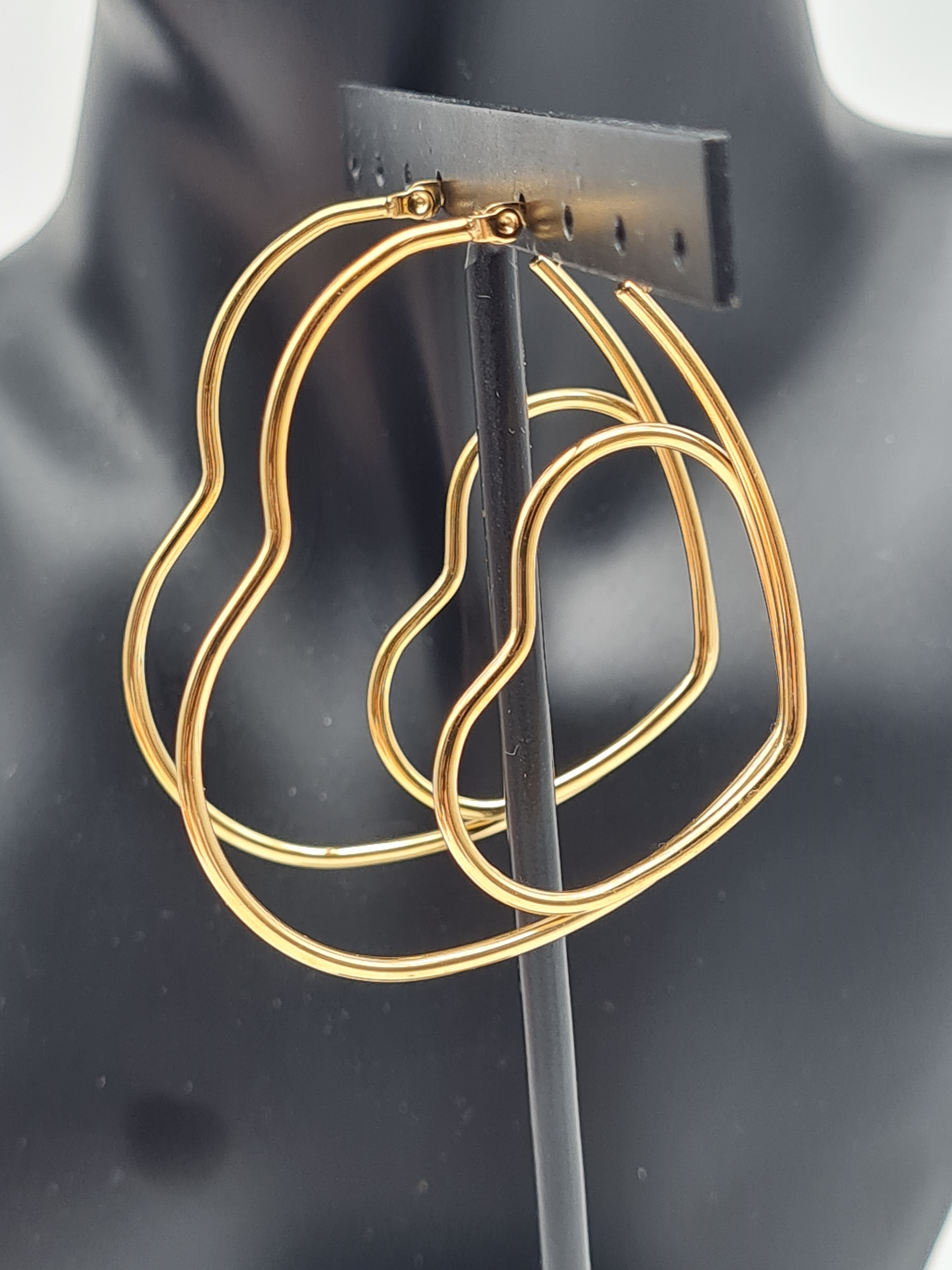 Diese großen Doppelherz-Creolen begeistern mit ihrem filigranen Design und edlem Goldton. Stilvoll und romantisch zugleich, setzen sie ein elegantes Statement – perfekt für Alltag, Party oder besondere Anlässe. Ein Schmuckstück, das zeitlose Eleganz und modischen Charme vereint.