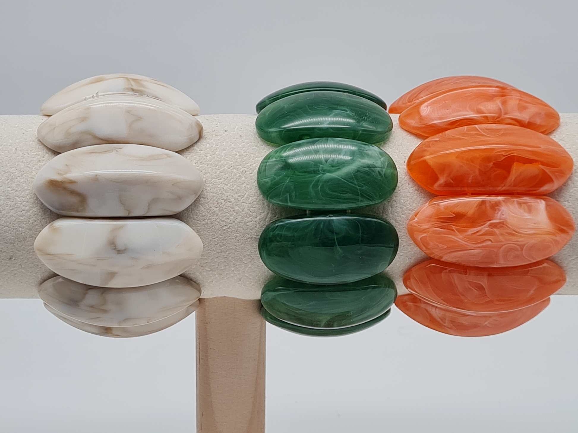 Yehwang Stretch Armband grün Marmor Orange nickelfrei Acryl