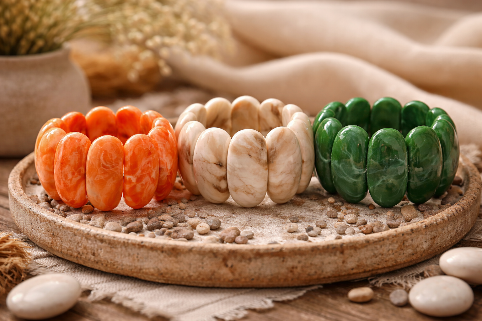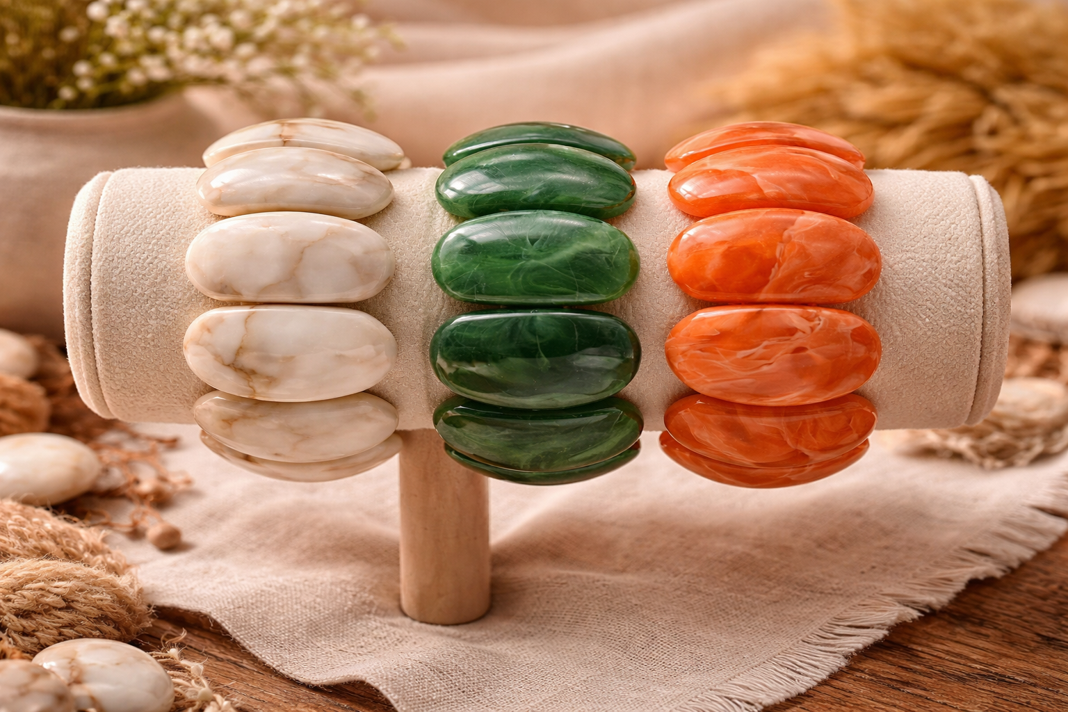 Armband Stretch grün Marmor Orange nickelfrei Acryl Trend 2026 Yehwang