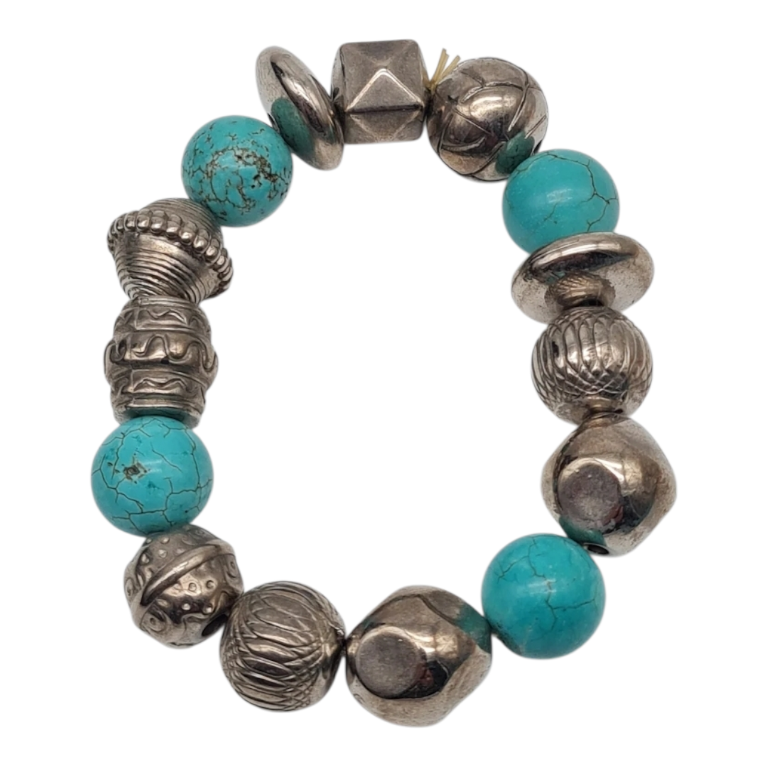 Armband Türkis Stretch Vintage Used-Look Bauern Silberfarben Nickelfrei Yehwang