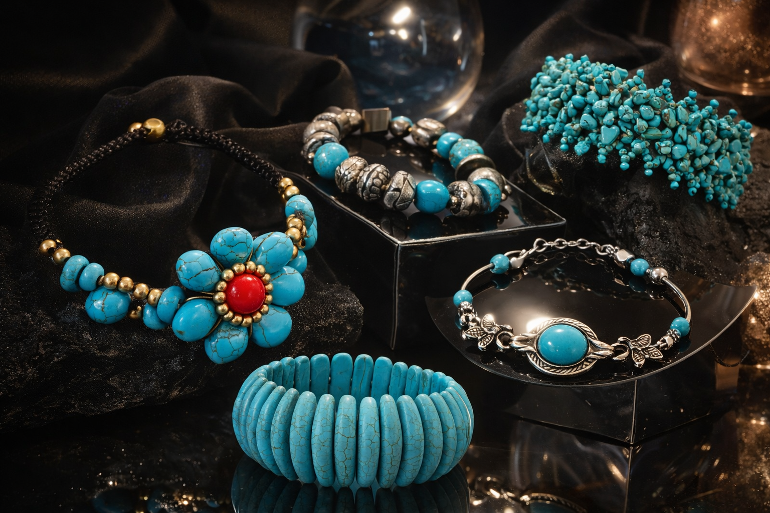4,5 cm breite mit Türkise Steinchen übersätes Armband